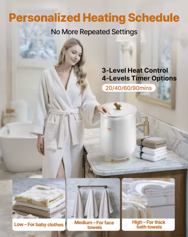 Using adjustable heat, toasty warms blankets and towels up to 284F, eliminating bacteria.